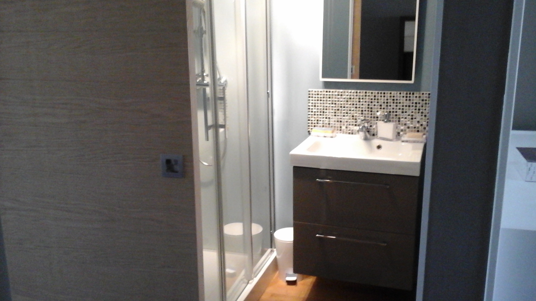 Appartement de type 2 style contemporain entièrement neuf comprenant : chambre lit double avec placards, salon avec canapé convertible, tv grand écran, salle d'eau avec lave linge, wc séparé, cuisine équipée avec vaisselle, four, plaque induction, réfrigérateur, cafetière, bouilloire... accès privé. Situé plein centre de ville, accès tous commerces, facilité de parking. Linge de lit et toilettes fournis NON INCLUS ; frais entretien et caution.